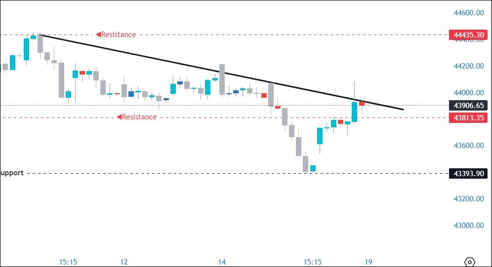 Bank Nifty closed at 43938.15(+1.14%). BN facing resistance at 44435 as described in yesterday's blog.
