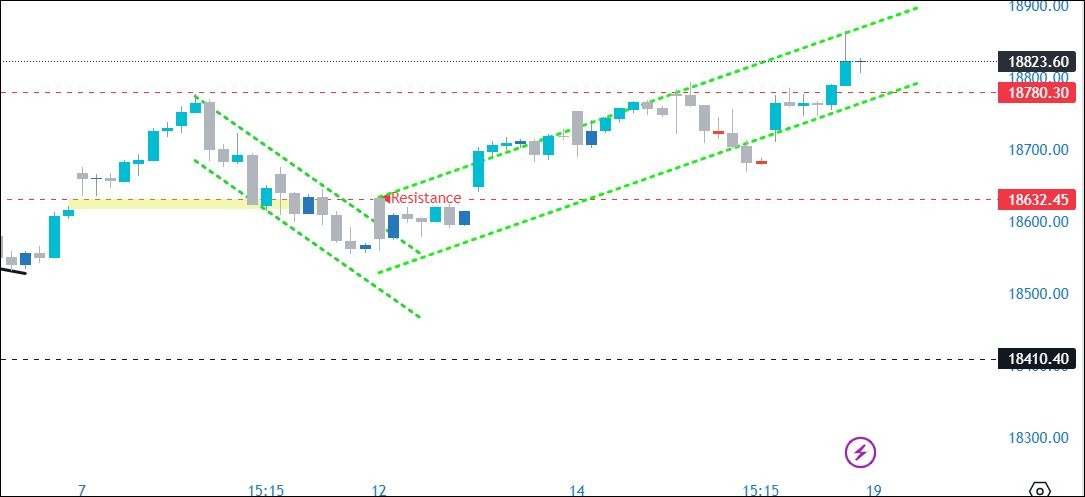 Nifty closed at 18826(+0.74%). Nifty crossed the resistance zone of 18780 as described in the last blog.